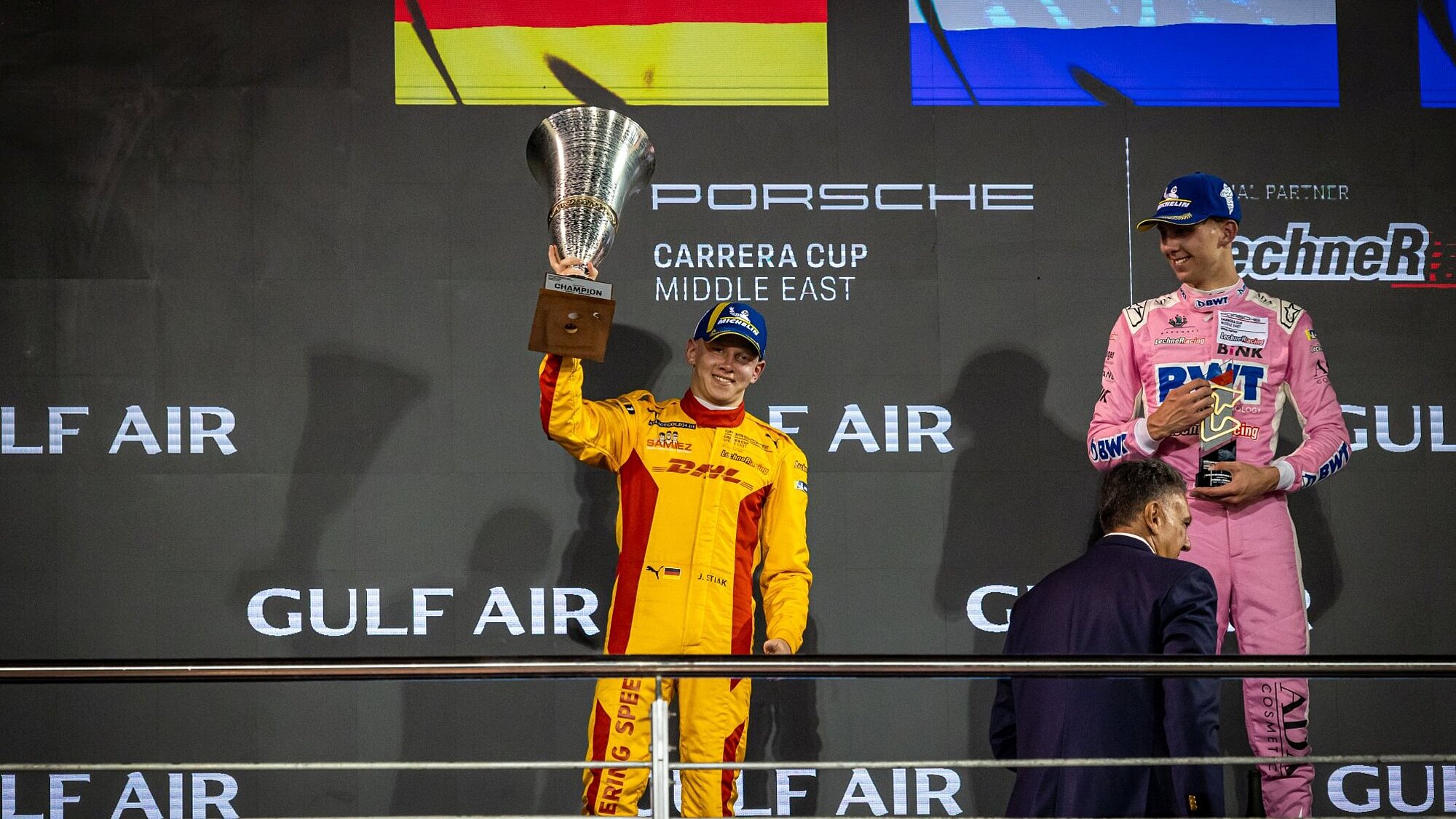 Janne Stiak ist neuer Champion des Porsche Carrera Cup Middle East – und das in eindrucksvoller Manier. Der 18-jährige Deutsche sicherte sich den Titel bereits in Runde 5 von 6, in Bahrain, nachdem er die gesamte Saison das internationale Fahrerfeld anführte.